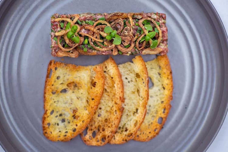 The food, described as avant-garde French-Mediterranean with an international twist, does not disappoint. The in-house sommelier will gladly pair dinner with the perfect wine, but start the night with the namesake Villa Azur cocktail, a blend of champagne, raspberry purée, and limoncello, or the Dr. Azur, made with tequila, vermouth, Campari and torched rosemary, for a bit more punch. From there, kick off the meal with the tuna tartare, which incorporates pickled vegetables, orange segments, lemon emulsion, and avocado salsa verde for a bright and fresh rendition of the popular dish. Arancini (a Sicilian specialty) arrive as miniature golden risotto balls fried to perfection and packed with flavor, topped with truffle aioli. Burrata (mozzarella’s creamier cousin), is offered in two appetizers: Truffle Burrata, (shaved truffle atop the cheese) and the Local Burrata, which comes with a balsamic glaze and tomato-garlic concassé served over a tangy romesco sauce.